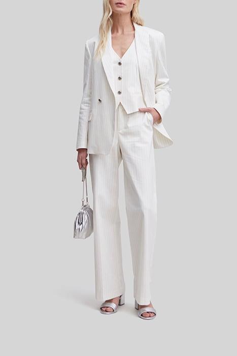 The Ecru Suit Jacket Takes The Tailoring Trend To A New Level With Effortless Elegance Making It Double-Breasted With Pinstripes. Wear It As A 3-Piece Suit With The Matching Waistcoat And Trousers.