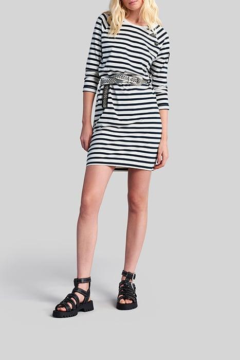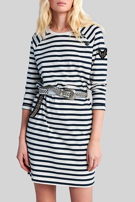ECRU SAILOR-STRIPE DRESS WITH BADGE ON SLEEVE