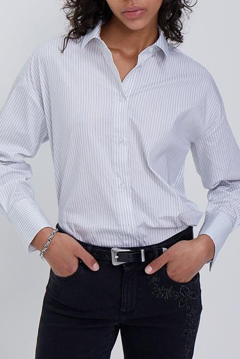 This Shirt With Thin Grey Stripes On An Ecru Background Goes For A Baggy Fit And Nightdress Hem To Wear Over A Pair Of Jeans.