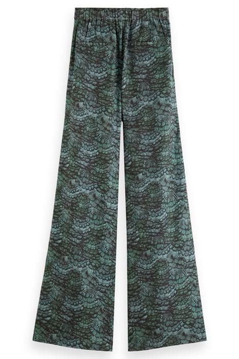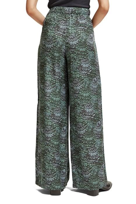 Introducing the Eleni high-rise wide-leg pyjama pants by Scotch & Soda, available in a luxurious feather bottle green color. These chic and stylish pants are the perfect combination of comfort and sophistication.