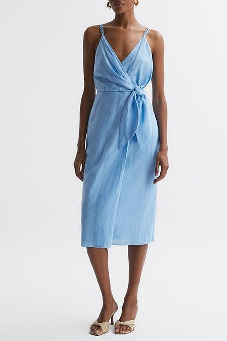 Resort Styling Calls For The Blue Esme Dress. It’S Cut From 100% Linen For A Lightweight Feel And It Drapes Naturally To A Midi-Length Finish. A V-Neckline And A Side Tie Element Are Added To Accentuate The Profile. Tailor The Look With The Adjustable, Beaded Shoulder Straps, And Slip On Your Favourite Sandals.
