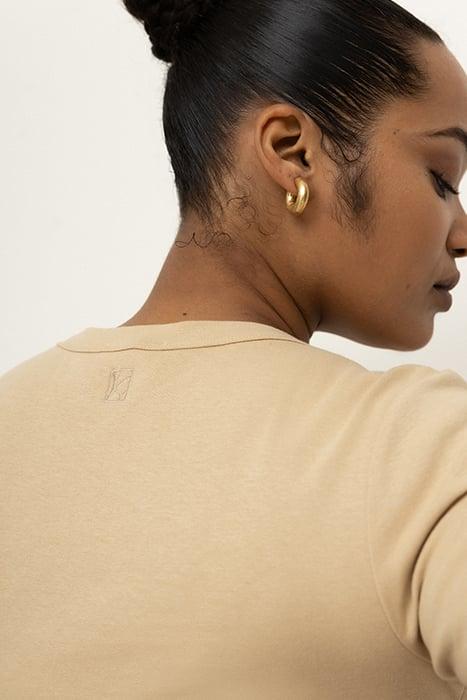 The Viveh Esme Top Is A Regular Fit T-Shirt With A High Neckline, Short Sleeves And Embroidered With The Viveh Signature Monogram Along The Back. Pair With The Zircon Jeans, The Mica Skirt Or The Quartz Pants.