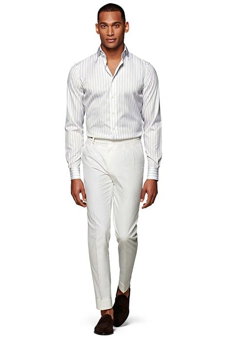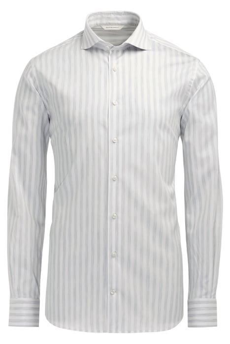 • Highlighted by a pronounced grey stripe, this sharp button-up is tailored to an extra slim fit from soft, breathable cotton-lyocell blend, and features a single cuff and curved cutaway collar.