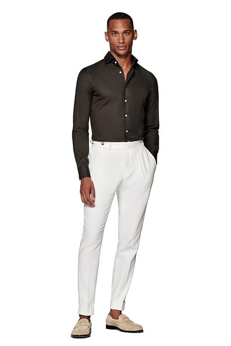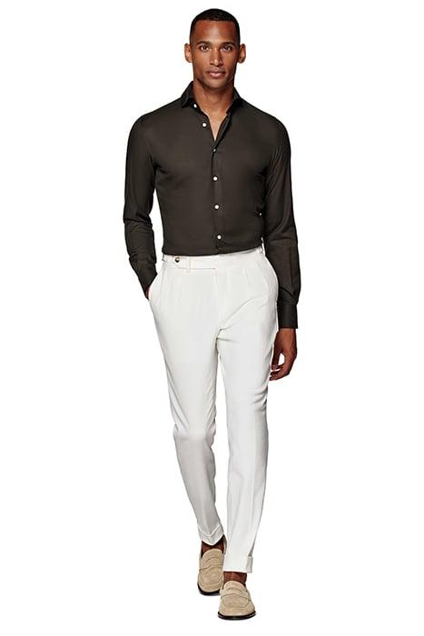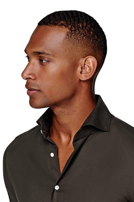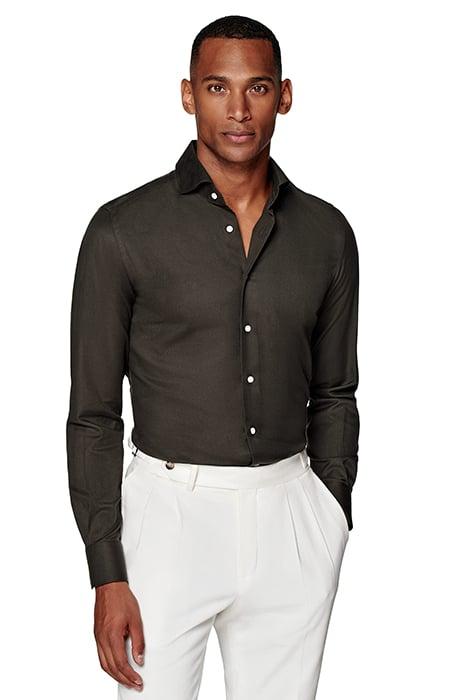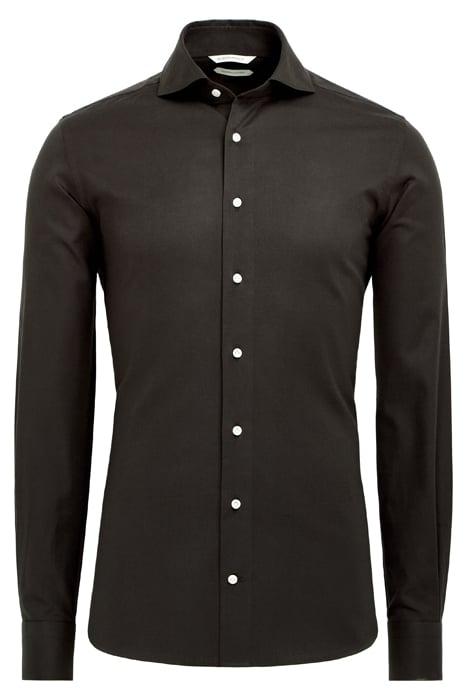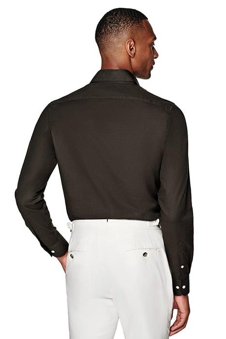 Tailored To A Slim Fit, This Dark Brown Shirt Is Crafted With A Single Cuff And Curved Cutaway Collar.