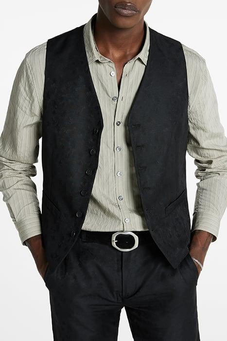 Exemplifying Jv’S Sartorial Mastery, The Collarless Wooster Vest Seamlessly Merges Elegance With Modernity. Defined By Its Front Darts And Sophisticated Welt Hip Pockets, Its Charm Is Further Elevated By The Luxurious Italian Abstract Jacquard Fabric. A True Representation Of Timeless Refinement In A Modern Silhouette.