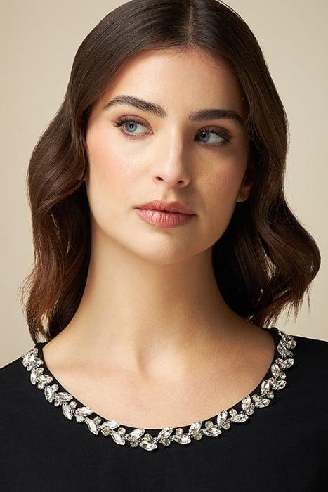Cotton Blend Plush Dress,Crystal Set Stone Embroidery To Embellish The Neckline