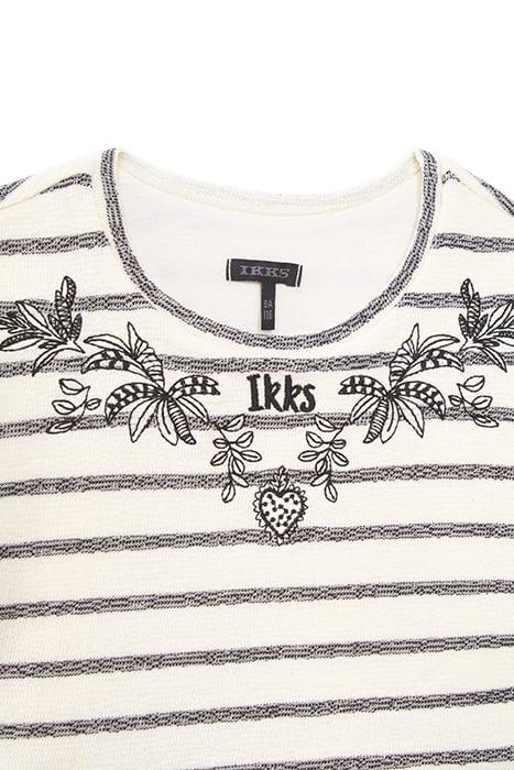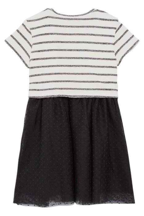 GIRLS' ECRU DRESS, BLACK STRIPED MIXED-FABRIC TUTU SKIRT