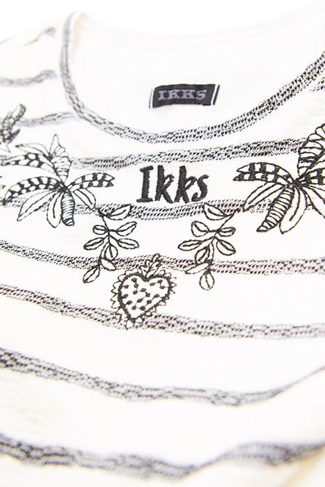 The Mixed-Fabric Dress Is Still A Must-Have In Our Collections With An Ecru Striped Knit Top And Embroidery, With A Black Dotted Swiss Tulle Double Skirt.