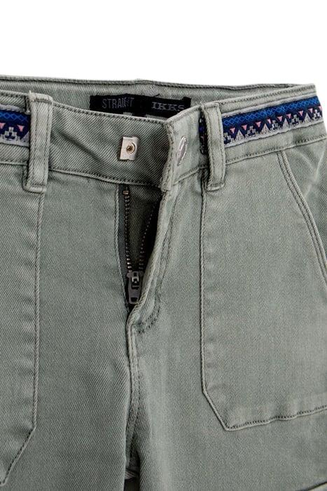 GIRLS' KHAKI CARGO JEANS WITH EMBROIDERED BRAID