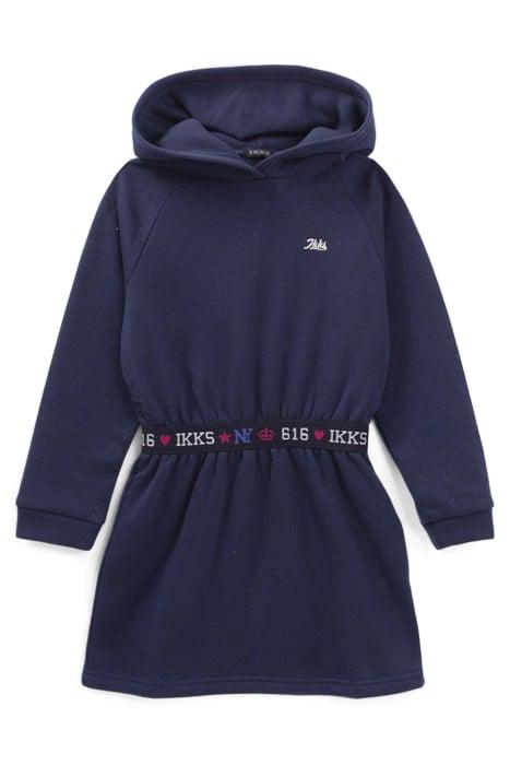 GIRLS’ NAVY GLITTERY HOODED SWEATSHIRT DRESS