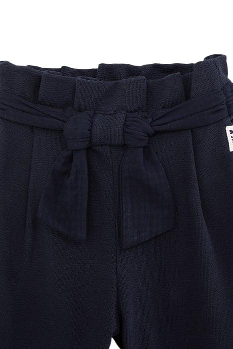 GIRLS' NAVY ORGANIC COTTON KNIT TROUSERS WITH BELT TO TIE