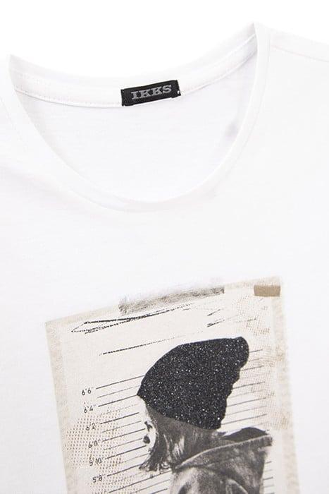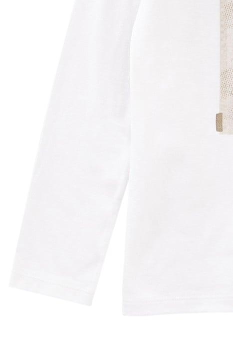 GIRLS’ OFF-WHITE COTTON T-SHIRT WITH GIRL IN BEANIE IMAGE