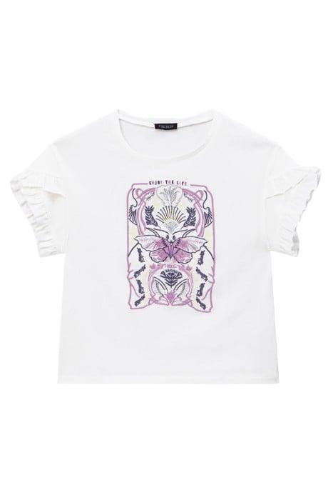 GIRLS’ OFF-WHITE T-SHIRT WITH FLORAL EMBROIDERY