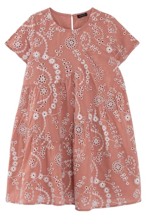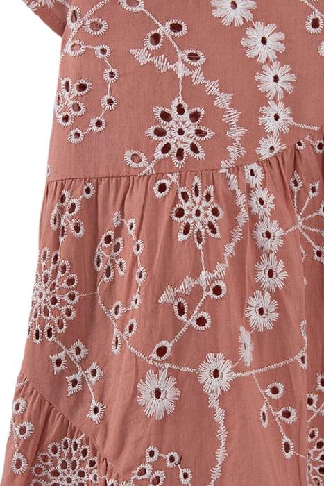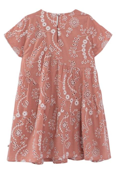 GIRLS’ OLD PINK ORGANIC COTTON DRESS, EMBROIDERED FLOWERS