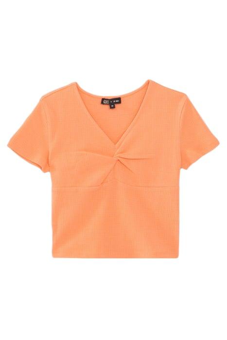 GIRLS’ ORANGE ORGANIC COTTON T-SHIRT, BOW EFFECT ON FRONT