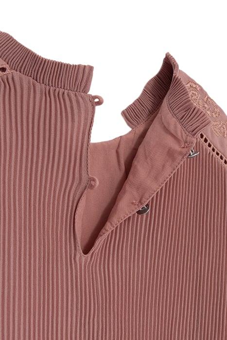 GIRLS’ PINK PLEATED DRESS WITH EMBROIDERED SHOULDERS