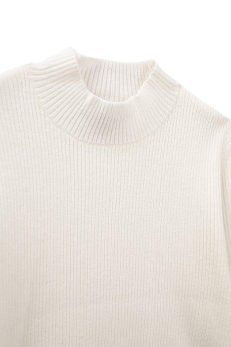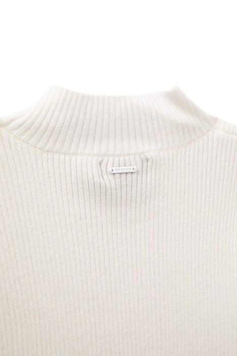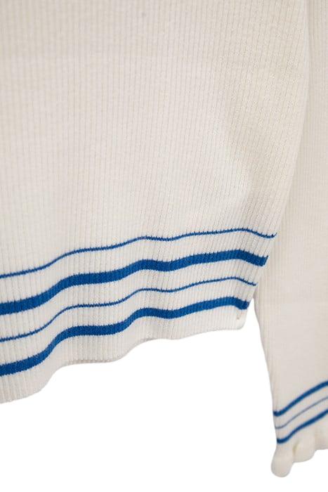 GIRLS’ WHITE KNIT SWEATER WITH BLUE STRIPES