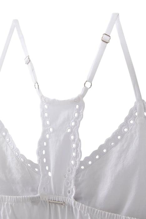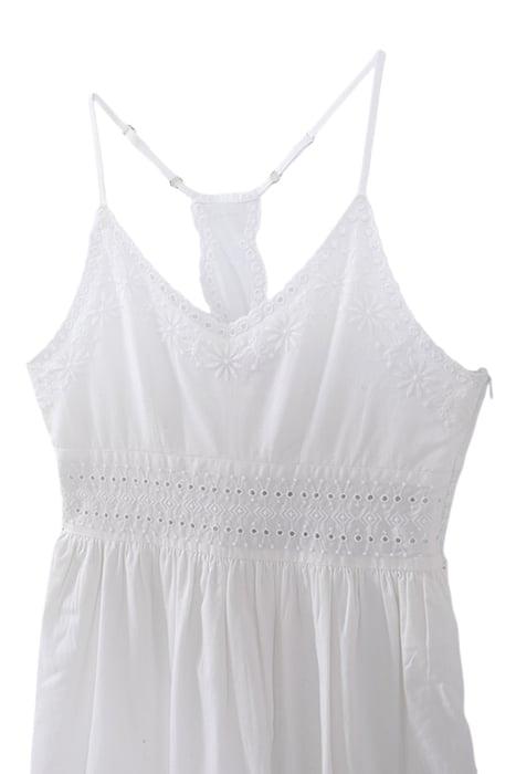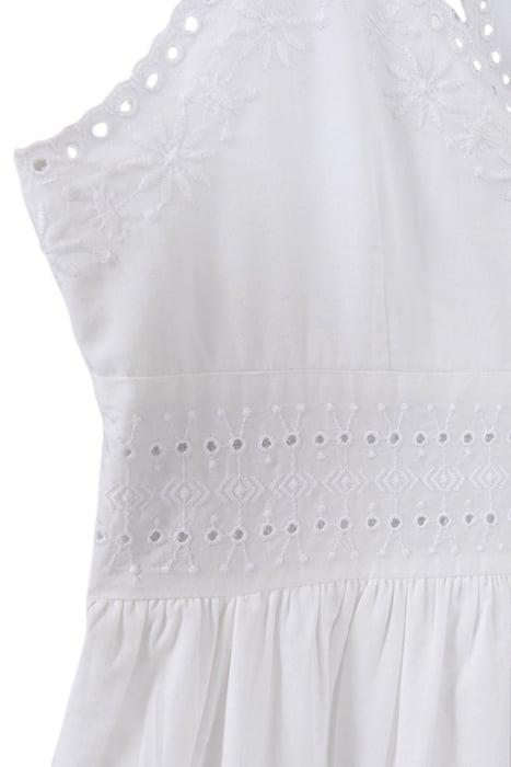 GIRLS’ WHITE LONG DRESS WITH EYELET EMBROIDERY DETAILS