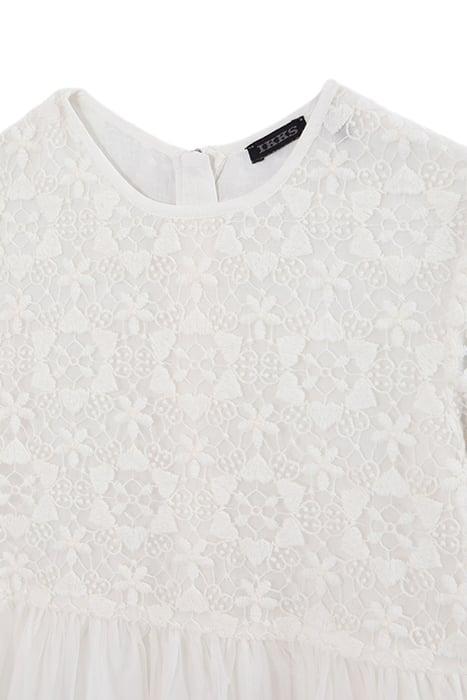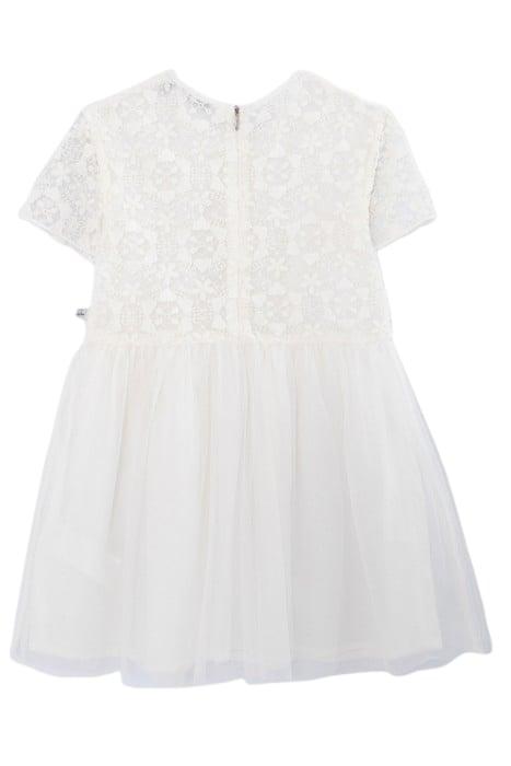 GIRLS’ WHITE MIXED-FABRIC DRESS WITH LACE AND TULLE