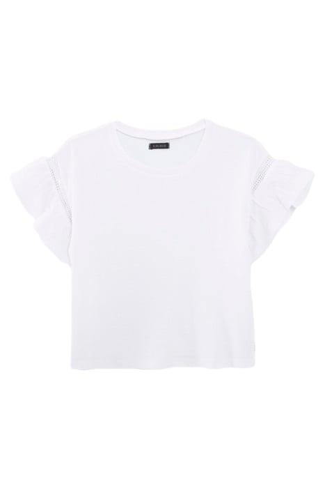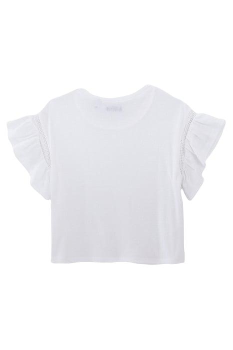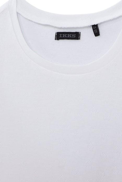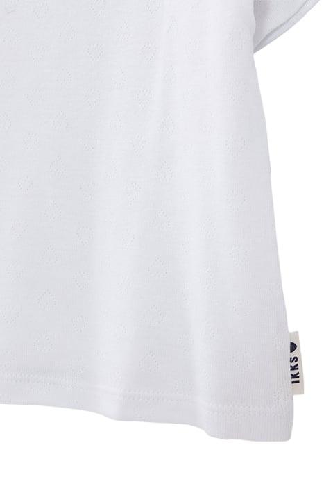 GIRLS' WHITE POINTELLE KNIT T-SHIRT WITH HEART MOTIF