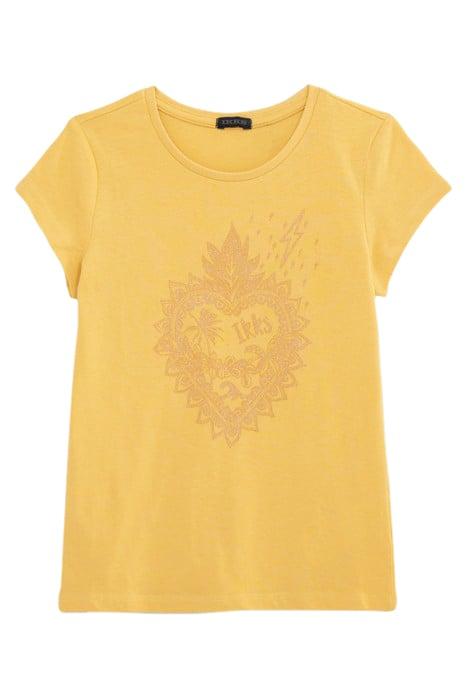 GIRLS' YELLOW ORGANIC COTTON T-SHIRT WITH GLITTERY HEART