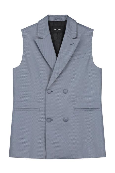 A deconstructed suit jacket turned into a tailored waistcoat. The relaxed fit can be adjusted using a concealed waistband to cinch in the waist to give a more structured and sharp silhouette. Features all the best elements of a blazer – wide peak lapels, fabric buttons pockets – but with a modern sleeveless design. Cut from an polyester viscose blend for a textured finish.