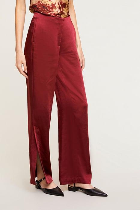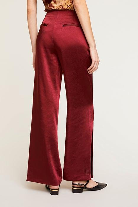 Solid-Colour Heavy Satin Palazzo Trousers,Tailored Front Opening With Clasps And Zip