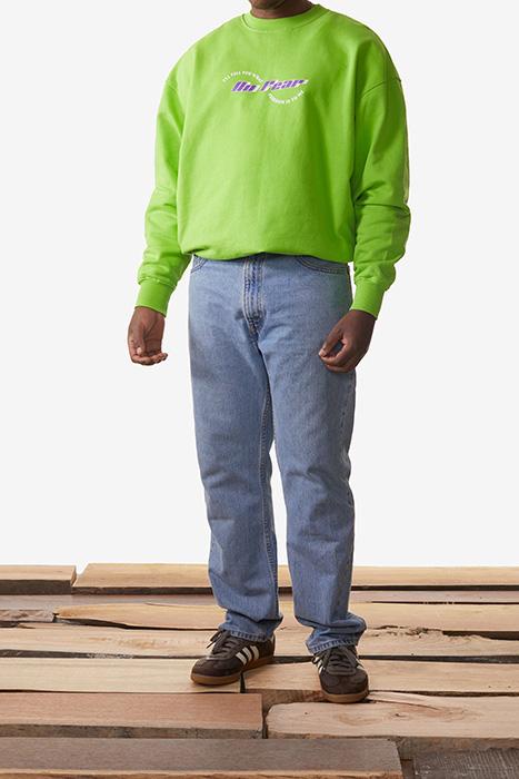 The classic sweatshirt takes on a more contemporary aesthetic with neon green colourway. Crafted from heavyweight French terry cloth and constructed with a boxy fit, this sweater combines unparalleled comfort with modern oversized proportions. Ribbed cuffs and hem help keep sleeves at the perfect length and a secure fit around the waist. Features raised rubber screen print on the chest.