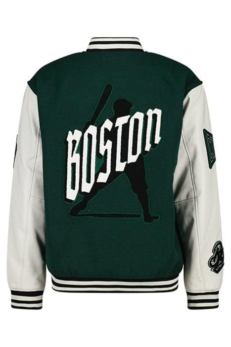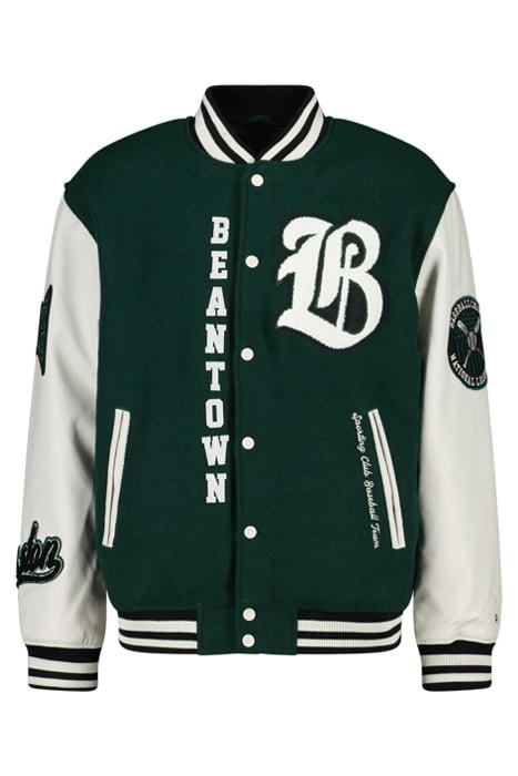 America Today Varsity Jack. The Joah Is A Super Fat Gender-Neutral Varsity Jacket. The Jacket Has An Oversized Fit And Therefore Has A Dropped Shoulder. The Sleeves Are Made Of Imitation Leather And Have Embroidered Patches. On The Chest Are Artworks And The Jacket Has A Pocket On The Left Inside. This Old School College Jacket Is A Statement Piece In Your Wardrobe. Our Male Model Is 182 Cm And Wears Size L. Our Female Model Is 168 Cm And Wears Size S.