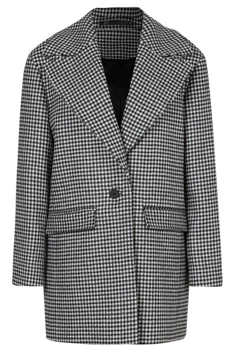 Jocie Coat Black/White. Blending classic craftsmanship with modern textures, the Single Breasted Coat in Black offers an elevated take on casual dressing. Whether dressed up or down, this Single Breasted Coat promises to be a go-to staple season after season.