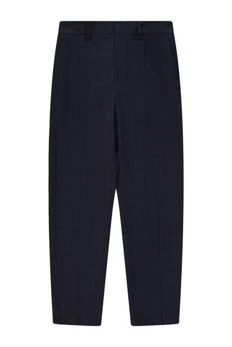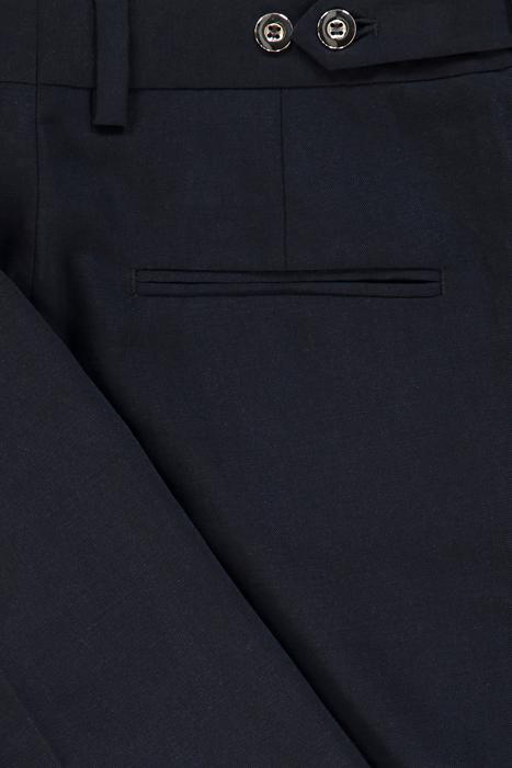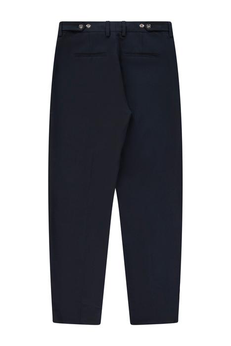 Tailored suit trouser with classic detailing. Slightly taper ed leg. Waistband fit can be adjusted with button tab at sid es. Decorative silver metal buttons.