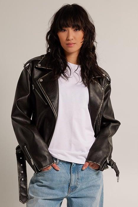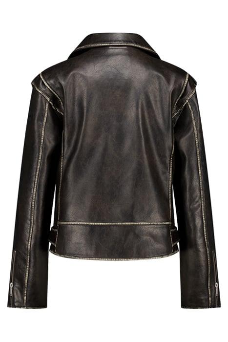 America Today Women'S Jacket. The Juno Is A Vintage Look Biker Jacket Made Of Faux Leather And Silver Details. The Jacket Has A Zipper Closure And Two Side Pockets With A Zipper Closure.