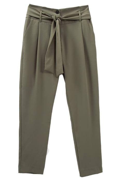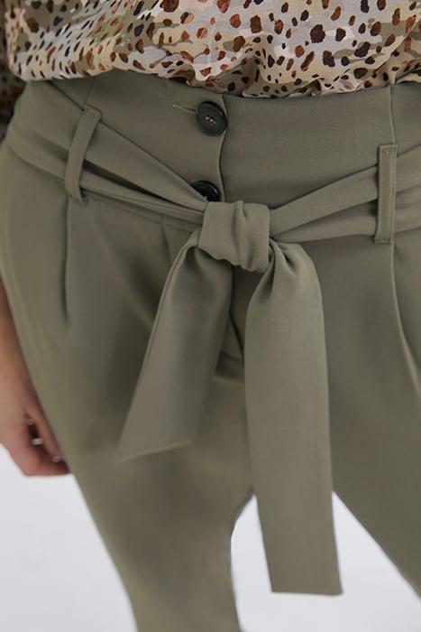 KHAKI BELTED HIGH-WAIST STRAIGHT TROUSERS