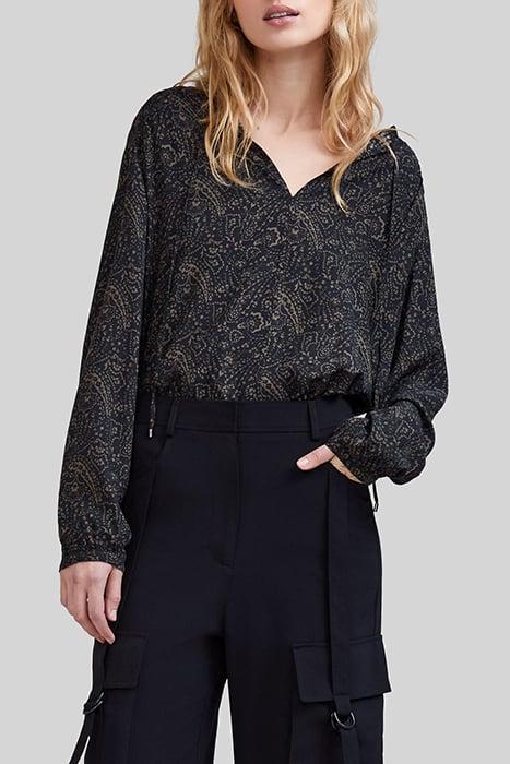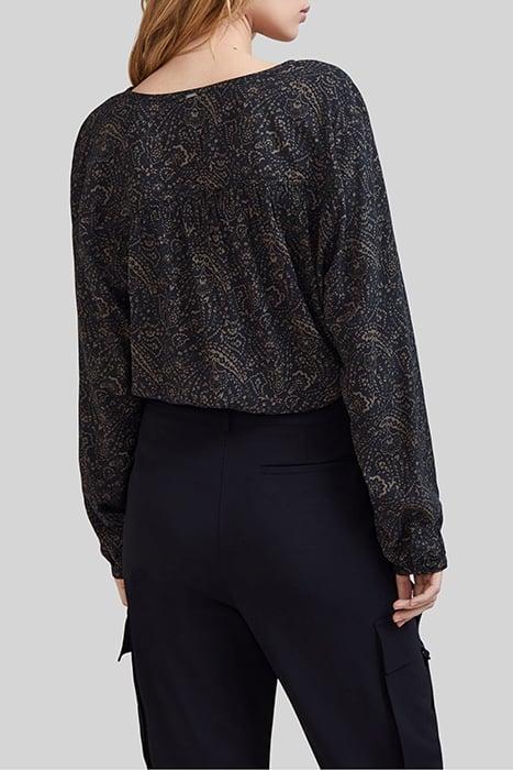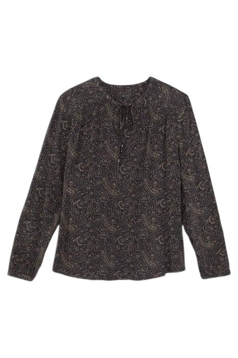 KHAKI LENZING™ ECOVERO™ FLORAL PAISLEY BLOUSE