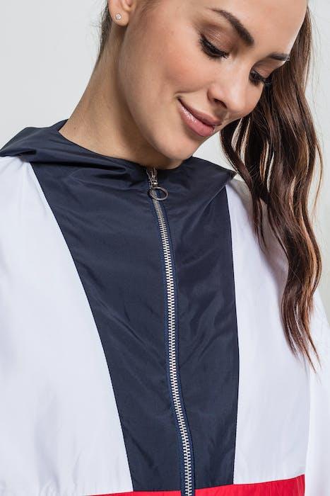 LADIES 3-TONE OVERSIZE WINDBREAKER NAVY/WHITE/FIRE RED
