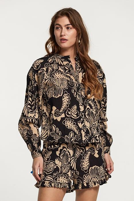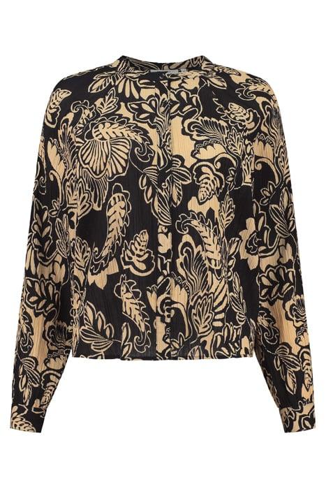 LADIES PLYMOUTH BLOUSE ARTSY LEAVES BLACK