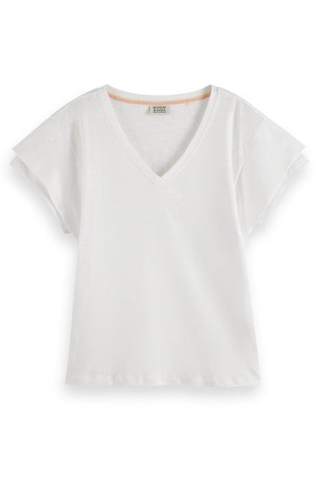 LAYERED SLEEVE BOAT NECK T-SHIRT WHITE