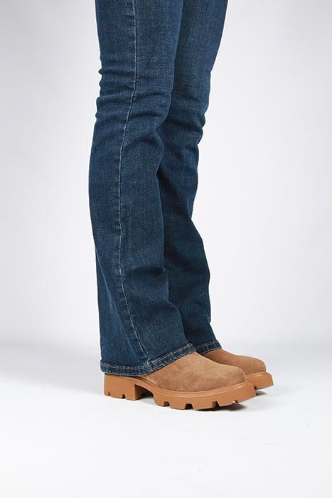 This Leila is a modern Chelsea boot from Blackstone that catches the eye. With a chunky sole and rugged profile, these boots make a statement. But don't be fooled - thanks to the lightweight EVA material, they are surprisingly comfortable for all-day wear. The Leila is designed for confident and stylish women, combining fashion and function. The classic Chelsea boot design is finished with pull tabs featuring the Blackstone logo. The elastic ankle is characteristic of Chelsea boots and allows for easy on and off. Pair these striking boots with your favorite jeans and leather jacket for a cool look, or with a flowing dress and tights for a feminine vibe.