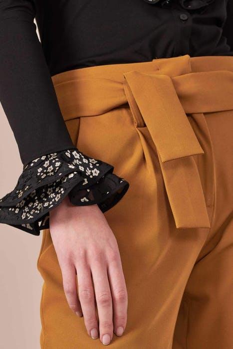 The LEXIE are straight leg cropped pants in this season's color, Mustard. These pants are enhanced with a single pleat on each side and have a removable self-tie belt to accentuate the high-rise, paper bag waist. The LEXIE pants feature open pockets on the sides and a center-front zipper with a hook and eye for closure.