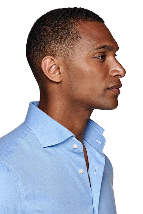 This Light Blue Twill Shirt Is Tailored To A Slim Fit And Features A Curved Cutaway Collar And Single Cuff.