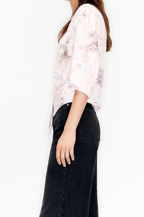 T-Shirt With Newdog Print In Light Pink. Fitted With V-Neck And Puff Sleeve. Ruched Front With Drawstrings.