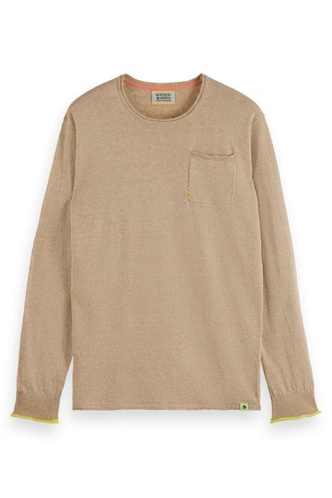 LINEN COTTON BLEND CREW NECK SEASTONE