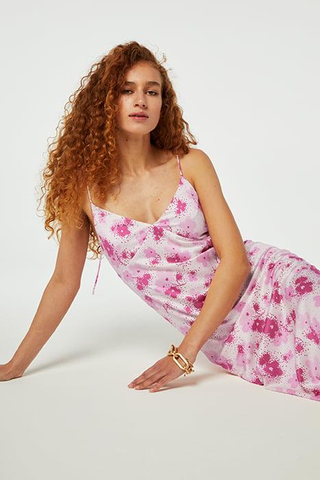 LISA DRESS HOT PINK/CREAM WHITE