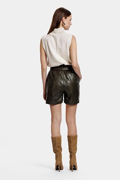 High-Rise Leather Short In A Safari Look With A Metal Buckle And Pleats On The Front. This Skirt Has A Regular Fit.