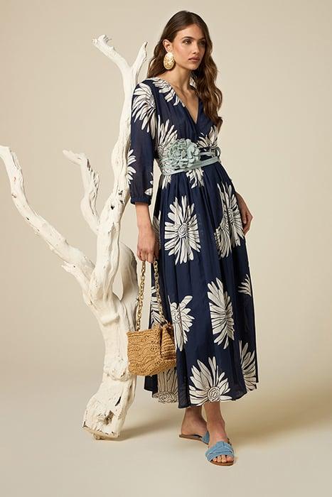 LONG COTTON MUSLIN DRESS WITH PATTERN BLUE