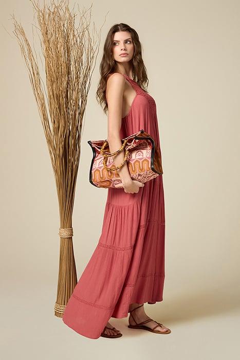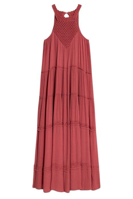 Long And Sleeveless Dress, Made Of Viscose Crepon, Lace Inserts And Top Part In See-Through Cotton Crochet, Green Story Because The Fibre Comes From Renewable Wood Sources, With Emissions And Water Consumption Reduced By Up To 50%.