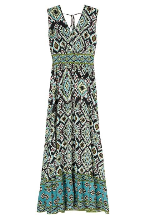 LONG DRESS WITH ETHNIC PATTERNED FLOUNCE BLACK