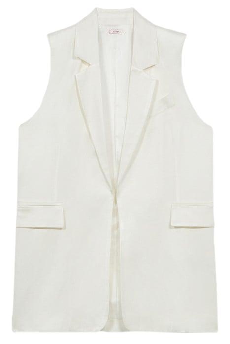 Flowing Linen Blend Fabric Long Waistcoat, No Front Fastening, Front Flap Pockets, Lining