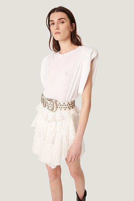 Step into modern luxury with the Looks Mini Skirt In White, a seamless fusion of edgy Parisian aesthetics and refined details. Perfect for creating a bold yet sophisticated silhouette.