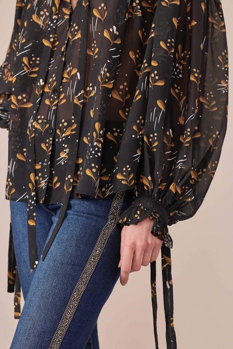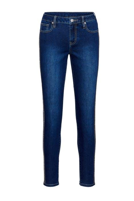 The LYNNEL is a five-pocket denim pant with a classic front button and zipper closure and contrasting double-needle stitching. These slim-fit jeans sit slightly below the natural waist and are decorated with side seams with gunmetal jewel ribbon trimmed with a fine chain. All rivets and buttons have the AF signature flower. The back pockets are a double tulip signature design with embroidered tonal rose detail.